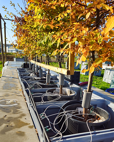 Les 19 500 arbres d’alignement font notamment des rues d’Angers un exceptionnel terrain d’expérimentation pour le jeune chercheur. Ce dernier suit ainsi en conditions réelles le comportement d’arbres matures. Il les a sélectionnés en fonction de leurs essences peu présentes à ce jour en ville mais pour lesquelles est pressenti un potentiel d’adaptation climatique.